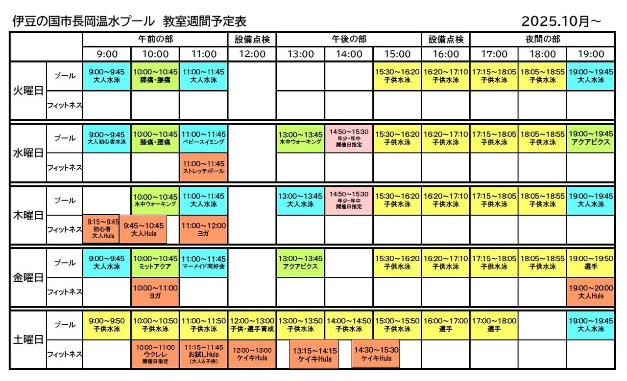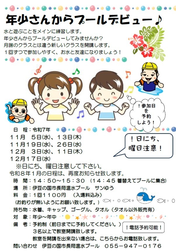 ご予約・お問い合わせは、長岡温水プール 055-947-0176まで