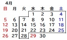 4月29日(水)・4月30日(木)